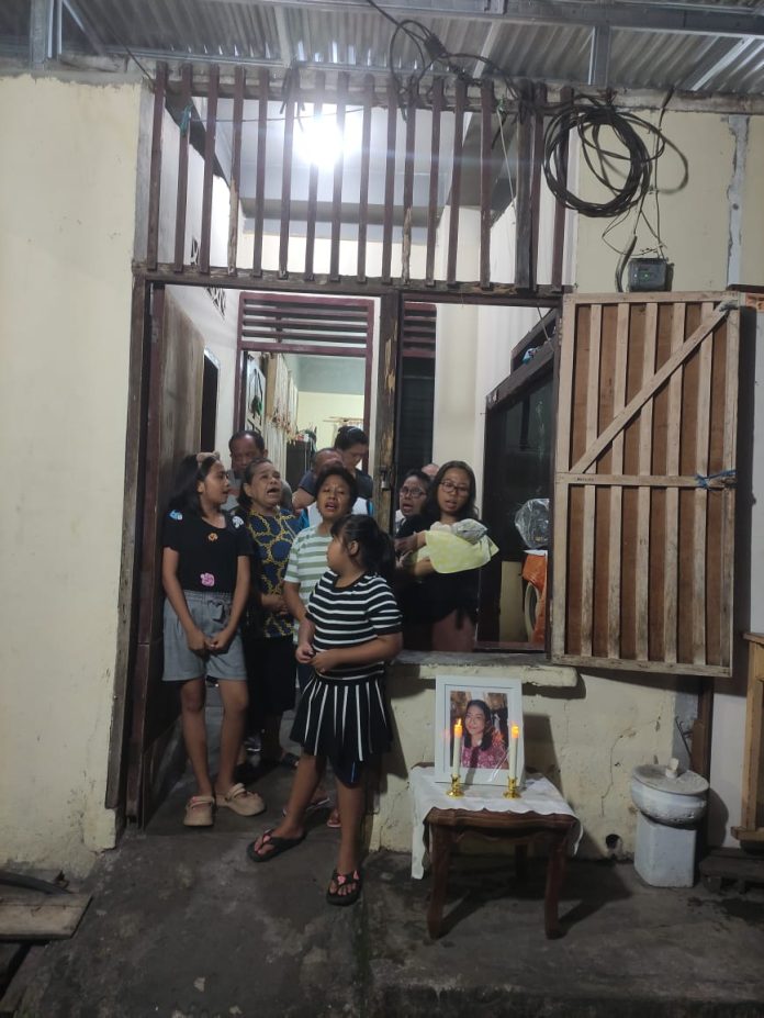 Ibadah dimulai pada pukul 19.00 WITA yang dipimpin oleh ketua wilayah rohani. Suasana yang penuh haru terasa saat seluruh hadirin berkumpul dalam doa, mengenang sosok Sdr. Mareyni Anjelita Piay yang dikenal baik dan penuh kasih. Pujian dan doa bersama mengalir dengan khidmat, membawa suasana spiritual yang mendalam.